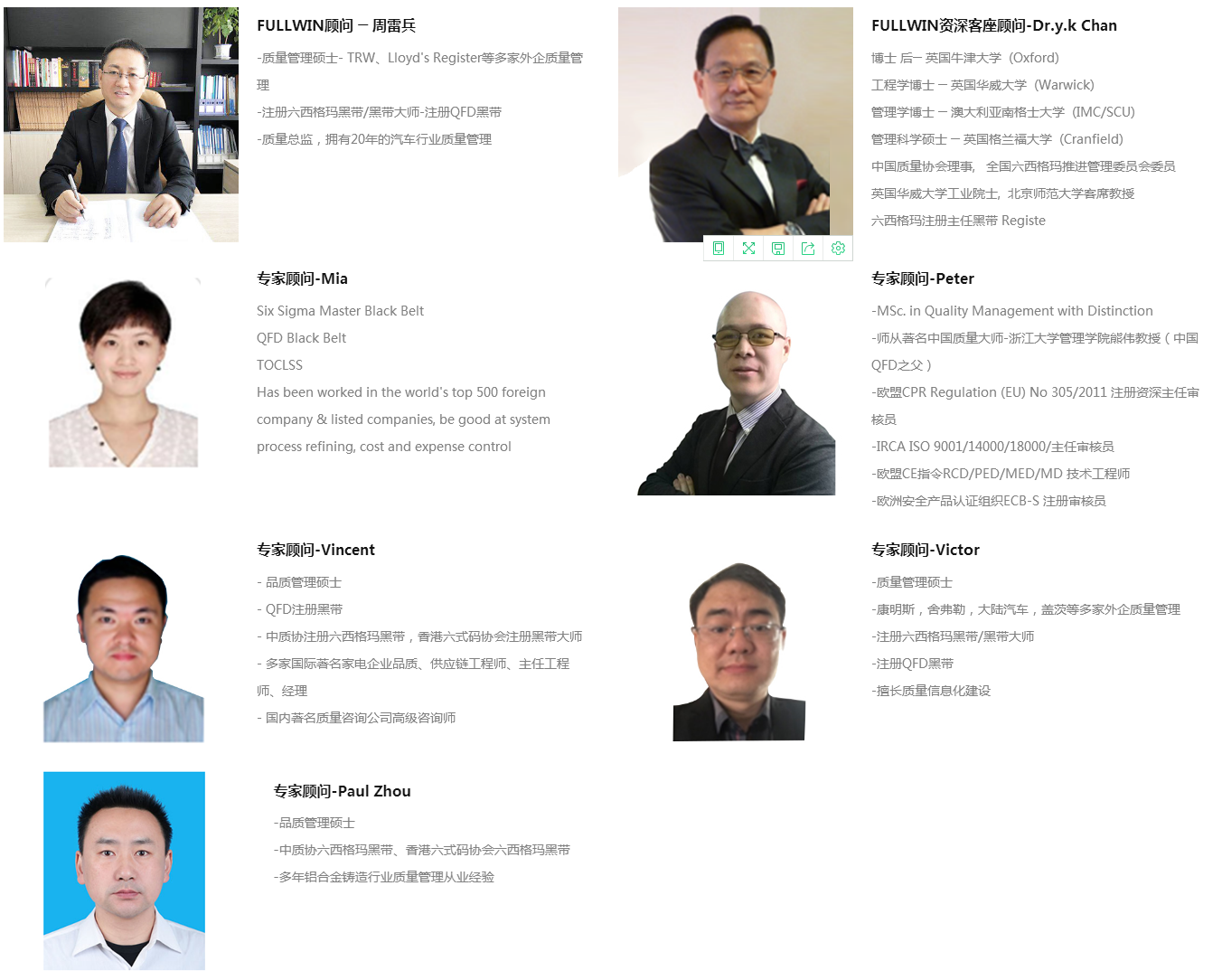根据FULLWIN公开班的经验,我们发现公开班学员的六西格玛项目的失败有两大原因。一是企业内部缺乏足够的资源支持;二是项目缺乏有效的专业技术辅导。为此,Fullwin携手SSI特别设计和推出公开班学员项目现场辅导服务。 我们将根据学员的不同项目情况选派专业的顾问到企业为学员提供深度,专业的现场项目辅导。Fullwin的顾问将从项目的选择开始,在DMAIC的不同阶段提供及时和有效的项目实施辅导,有效地保证学员的精益六西格玛项目的推进和成功完成。